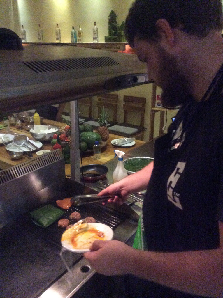 The cooking went well but it was super hot! Sweat was pouring off us adding salt to the dishes.
