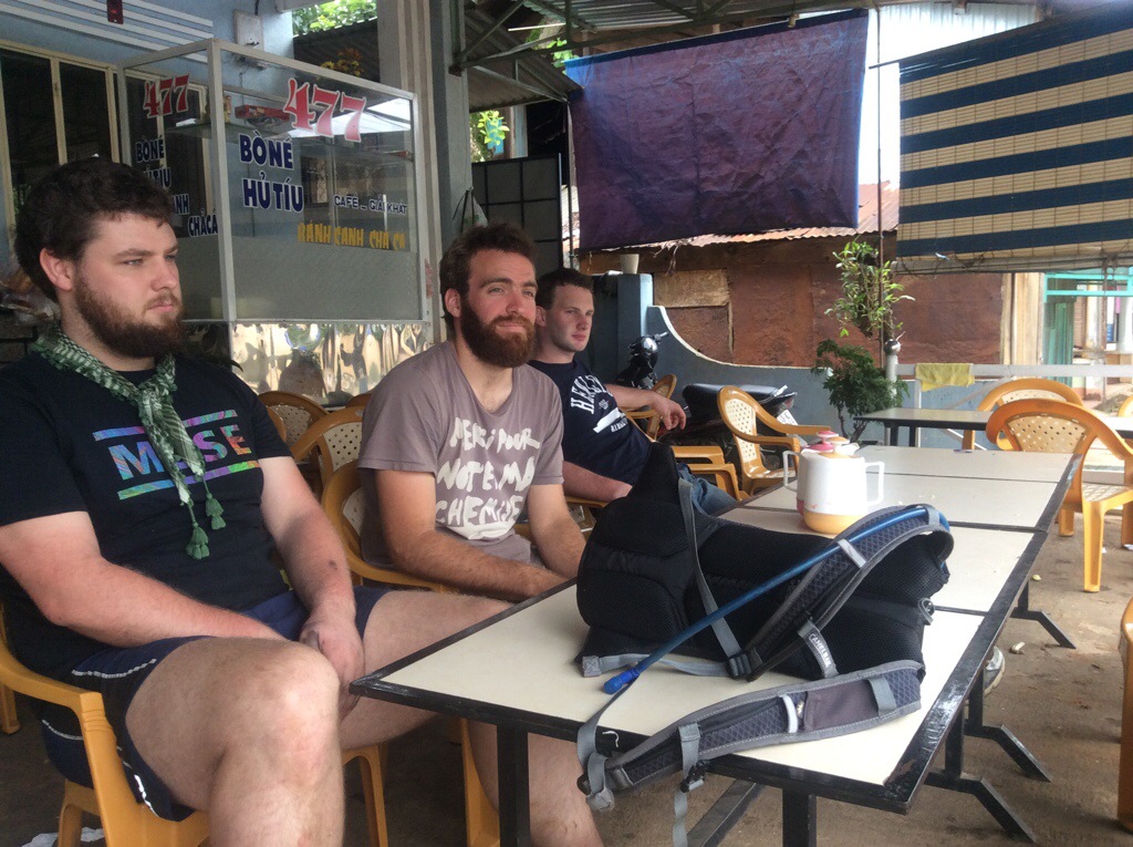 Whilst in this position Ivan likes to slack off and sleep whilst no one is watching. On one such occasion on a downward hill of loose gravel, trucks rushing past, Ivan decided it was time for a nap. After I rather rudely woke him up by kicking ten shades of shit out of his kick start we roared off to catch the others – who had turned around to come back to me. Luckily we spied each other going the opposite directions between a bus and truck playing chicken. Whilst waiting for the others to catch up I pulled over at a petrol station and removed the key so no Vietcong could make a sneak attack for Ivan (fuck knows why they would bother). The others caught up and we went to set off, but Ivan refused to budge. Mitch took over the process and we even ran round the petrol station trying the push start it, but to no avail. Mitch finally out of ideas and looking somewhat overwhelmed at the enormous task that is a 40 year old Minsk motorcycle promptly asked me for the keys, which were still in my pocket – and hence why Ivan wouldn’t budge.