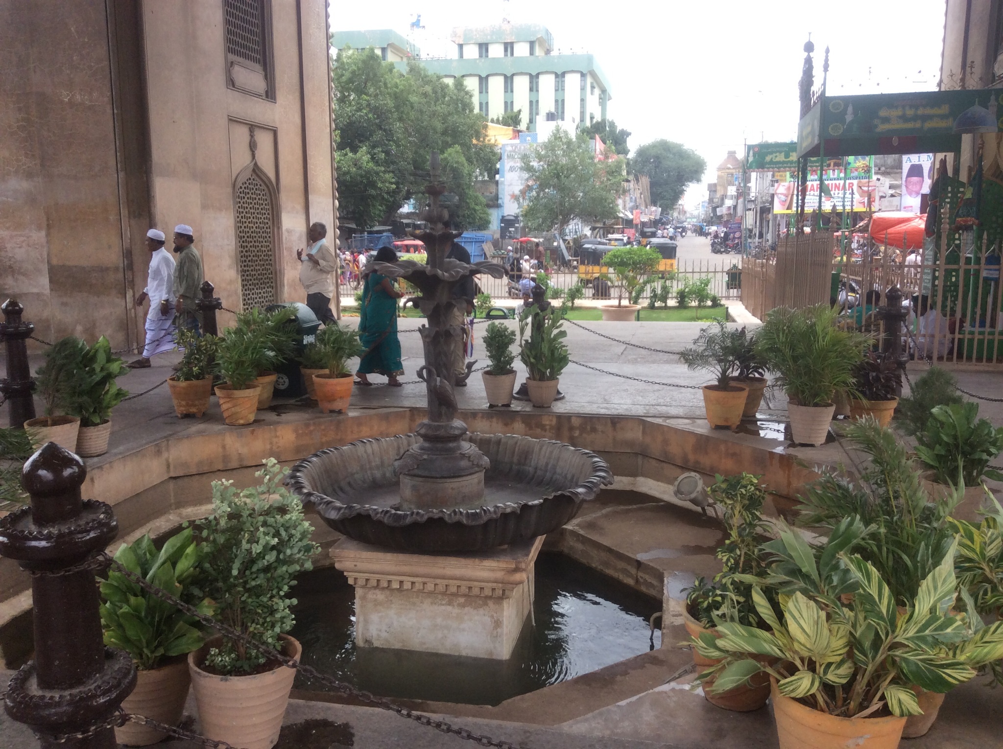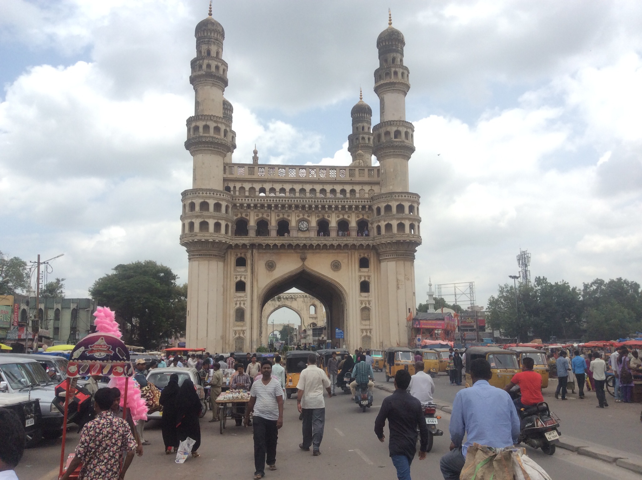 We passed through an archway and their it loomed in all it’s glory, The Charminar, built in the 1500’s by the then Muslim rulers who occupied Hyderabad. It is both a monument and a mosque, though the mosque on the second floor is closed off to tourists.