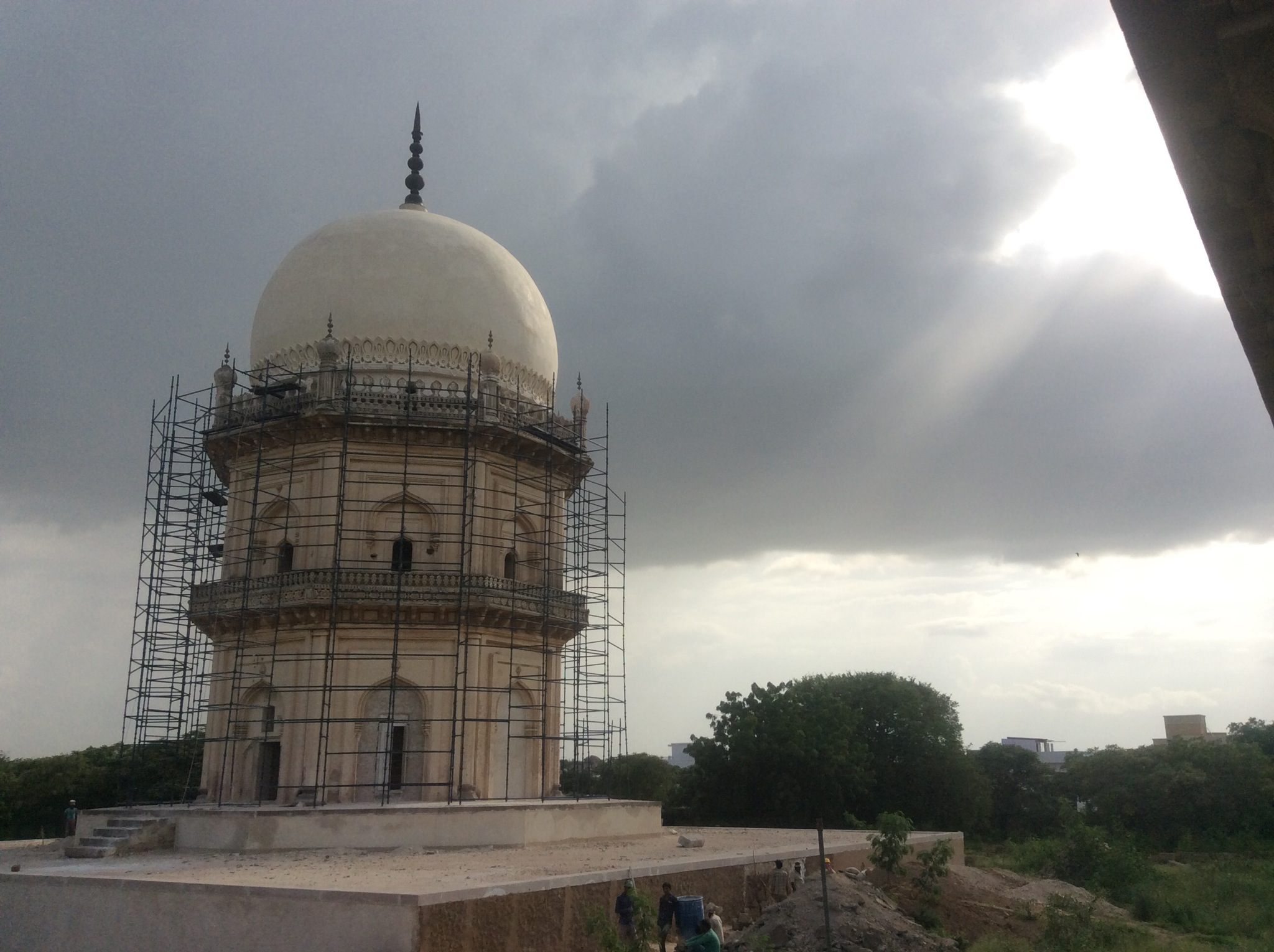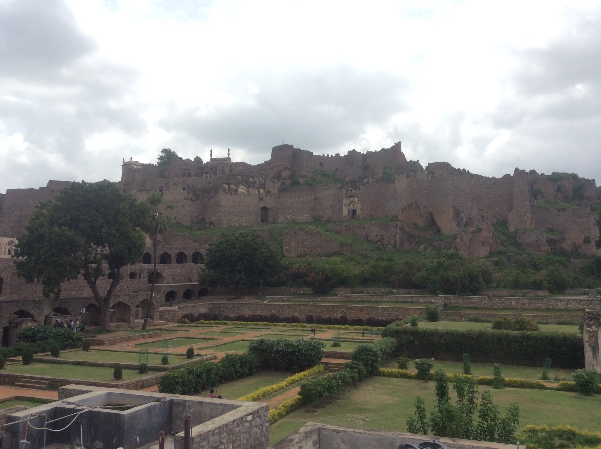 From the first floor I could see high minarets and what looked like palaces poking up from the city which for its most part was fairly level at about 2-3 stories. The high court, which I would later drive past, a huge red domed mosque rising up, and many more. From my vantage I could see my next destination the old fort built round the same time and the seat of power in Hyderabad the Golconda Fort.